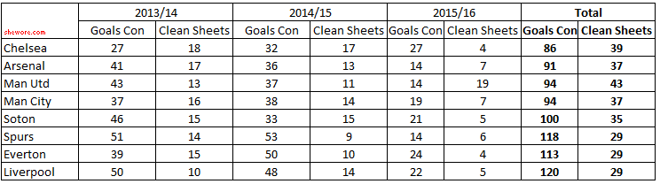 That should give you some food for thought. No team has conceded less than us over the last 2 years, and on Chelsea kept more clean sheets.