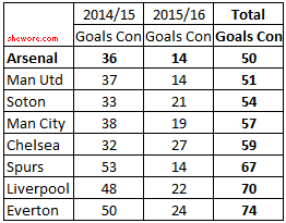 So even when we expand the data, we are only just behind Chelsea on goals conceded. Not bad for a team who’s defence is supposed to be weak. especially when you think 14.5% of the goals conceded were in just 3 games!