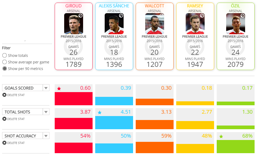 Joel Campbell & Alex Oxlade-Chamberlain have contributed 4 goals this season to The Arsenal. Frankly not good enough for a team that so often plays on the front foot.