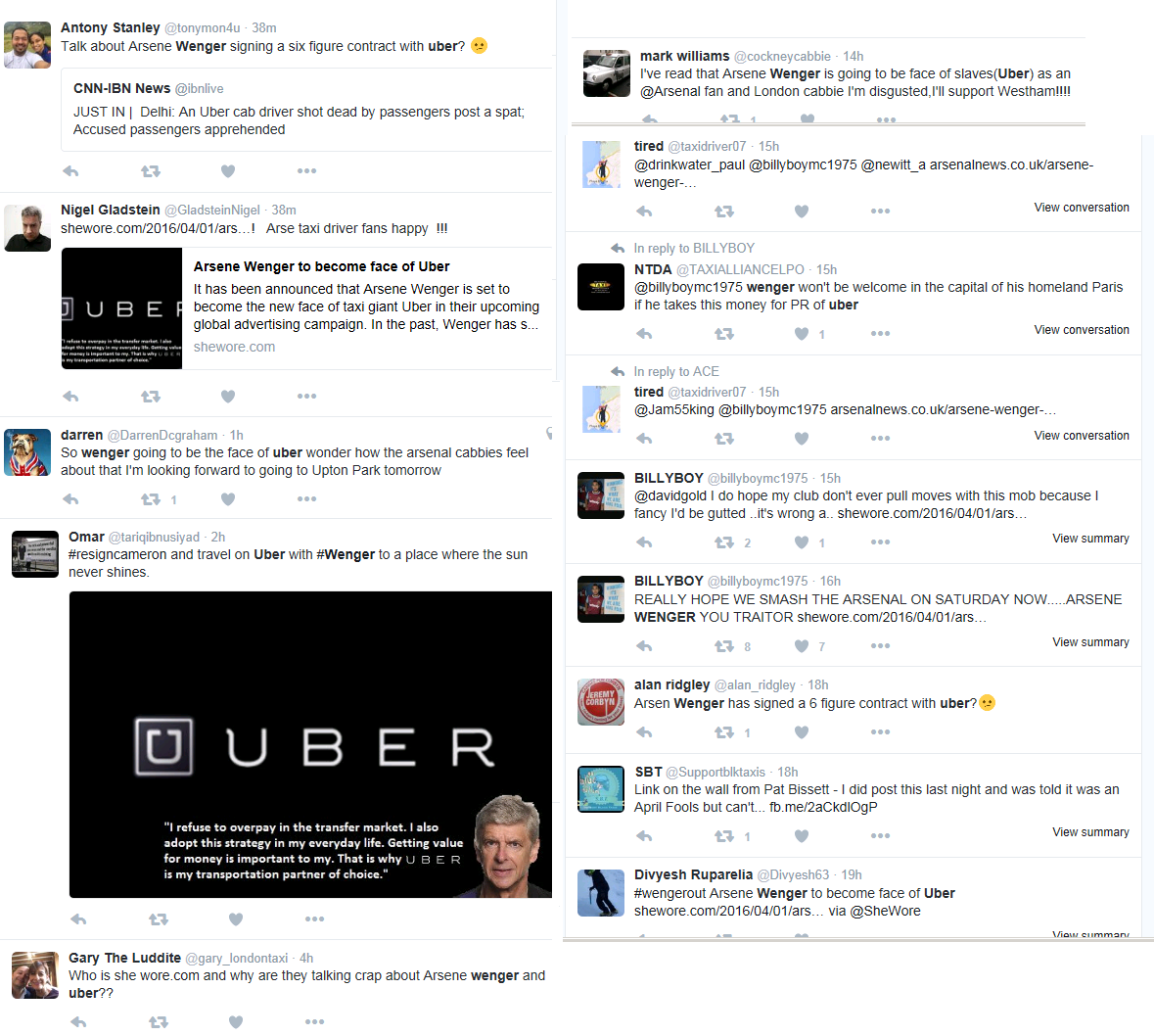 Wenger and Uber was an April Fool. It was not true.