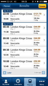 If Arsenal were drawn away to Newcastle on a Sunday in August at 11.30am, it would be impossible to get a train from London to Newcastle. The first train in is at 11:38. Even for a noon kick off, this train is pushing it tight to walk up the hill to St James Park. This will be replicated up and down the country.