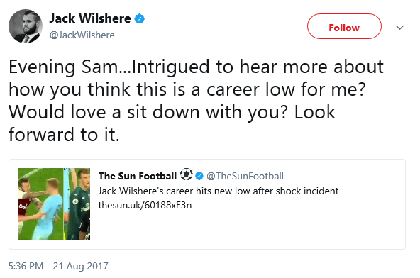 The media have gone OTT with the story, reporting that Wilshere punched a kid in the face. Some even saying it is a new low for his career.