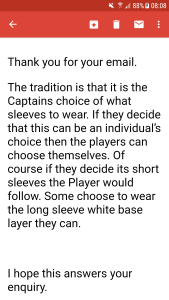 The Captain’s choice tradition was so that everyone looked uniform on the pitch, but now that is out the window. Going by the email above a few things now make a mockery of this great tradition.