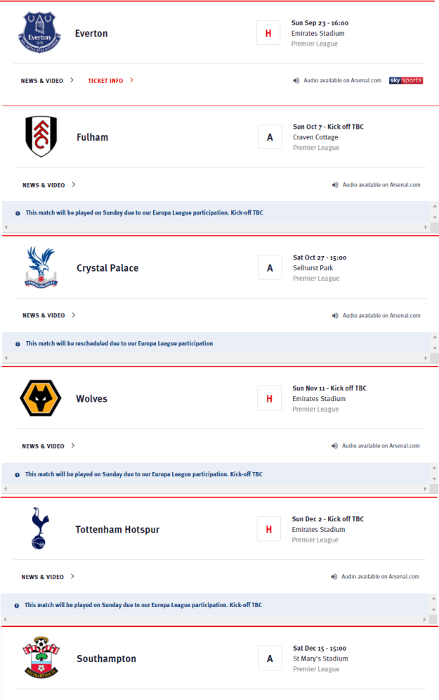 With Arsenal playing Thursday nights in Europe, one thing I always look at is what games are guaranteed to be moved to a Sunday due to our participation on the UEFA Cup.
