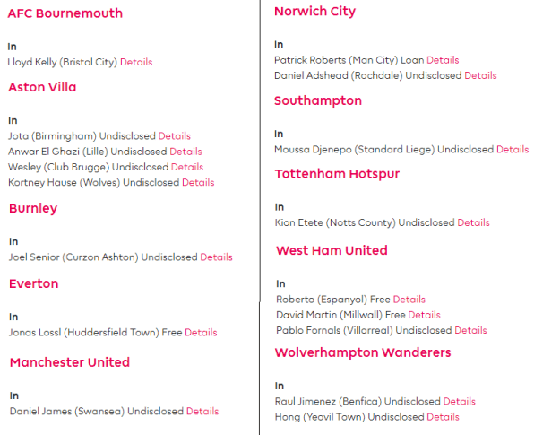 Whenever I hear people moaning that Arsenal have not don’t much business, I take a look at the Premier League website and peruse what business other sides have done. The answer in early June is usually “not much”.