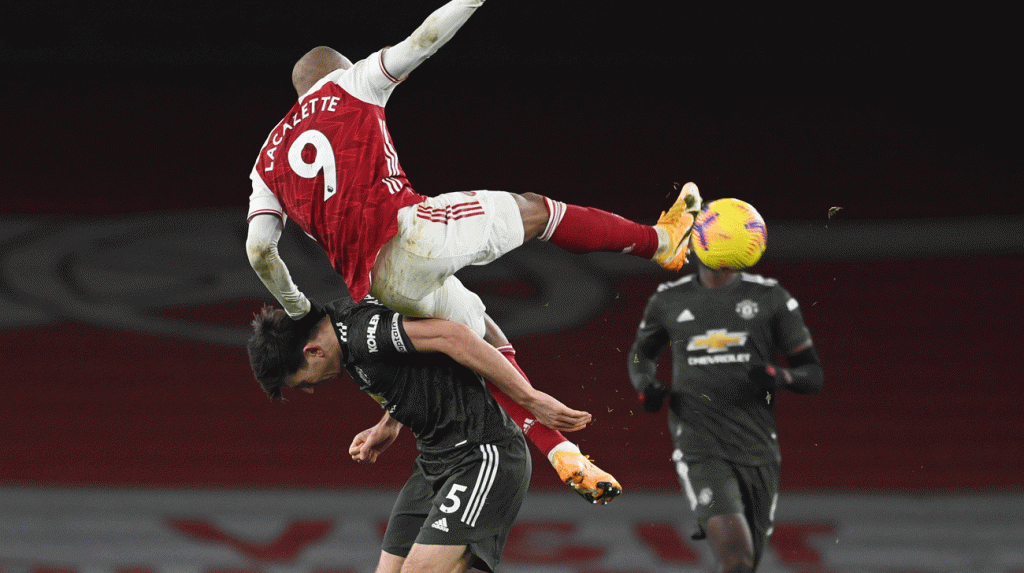 As expected in any match between these two leviathans, both teams started strongly with plenty of good passing and strong tackling out there tonight. Everyone was desperately trying to break through each others’ defences to even to get so much as an opportunity to score, but it was a defender’s game in the first quarter of an hour or so. Alexandre Lacazette had a superb shot on goal from a distance, but David de Gea gathered the ball easily, and a few minutes’ later, Fred’s goalbound shot was acrobatically tipped around the post for a United corner by Bernd Leno. Thomas Partey then ran at the visitors’ defence over a distance of around forty yards as their defenders backed off him consistently, but his subsequent shot was a disappointment as it went wide of the post by some distance. A clever free-kick from Nicolas Pépé found the head of David Luiz, but the defender’s header into the middle of the penalty area was easily cleared by the United defence, and after some pressure from the visitors in our penalty area, Emile Smith-Rowe broke out and ran for the United goal, and after running virtually the length of the pitch, slotted it to Nicolas Pépé, whose subsequent shot went inches wide of the post. After the half-hour mark, both sides’ defences started to loosen up a bit and chances became more plentiful for the strikers. Bruno Fernandes easily turned David Luiz out on the left of our penalty area, and his right-footed shot thankfully flew high and wide past Bernd Leno’s upright. As the minutes ticked away towards half-time, Manchester United pushed us back into our own half, and despite some worrying instances in our penalty area, and a free-kick that went high over Bernd Leno’s crossbar, both sides went into the break with honours even.