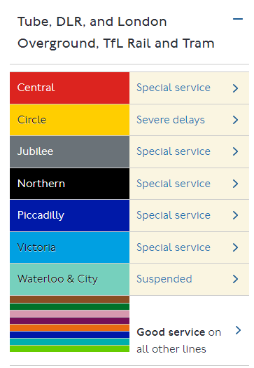 The lines affected are the Victoria, Central, Piccadilly, Northern and Waterloo & City Lines.
