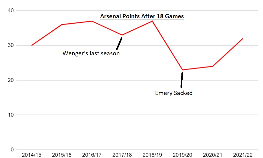 There is often a lot of debate whether we have progressed under Arteta. As I said above it often feels like 2 steps forward, 2 steps back. But how do we compare after 18 games against previous years?