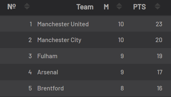 Manchester United have been playing catch up since they lost their opening two games of the season. But since there back to back defeats to Brighton and Brentford, they have gained 49 points from 22 games. No team has got more.
