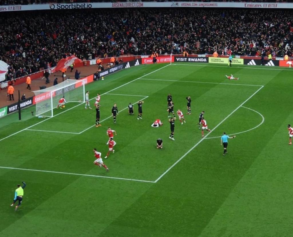 William Saliba went and gave the corner flag a kicking. Martin Odegaard was laid out on his back. Gabriel on his knees. Ben White in front of their keeper. Reiss Nelson looked embarrassed. Jorginho running on the pitch.