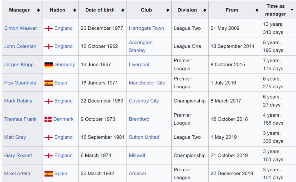 The turnover has created the mind blown fact that Mikel Arteta is now the 4th longest serving Premier League manager. And equally as crazy, he is the 9th longest serving manager in the top 4 divisions of English football