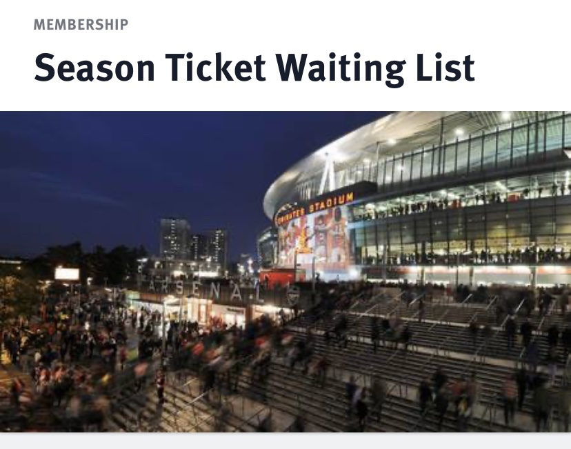 A mate of mine recently joined the Arsenal season ticket waiting list. His place in the queue? 94,495.