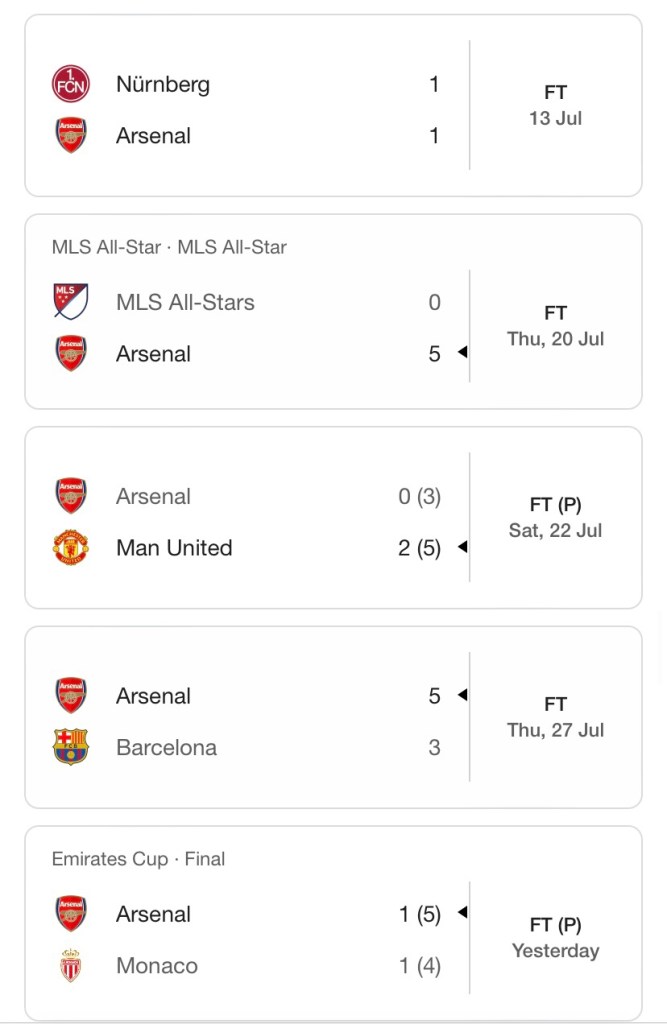 We upped our intensity and won 5-3. Ironically Barcelona manager Xavi came out after and said Arsenal treated it too seriously. And this is why you can often ignore pre-season results.