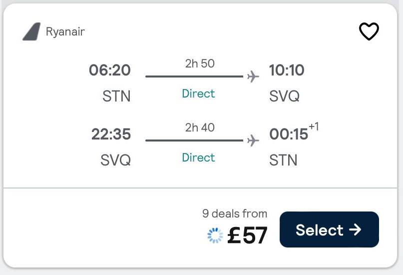 Those trips to Scandanavia cost me around £80 each. The trip to Athens around £120. So I thought I would check the week before for Seville…