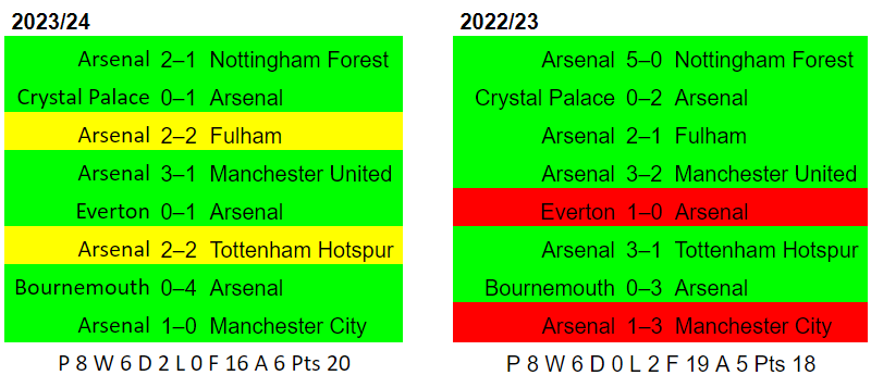 So we have 2 points more in the same games, although we have scored 2 loss and conceded 1 more. The goals scored difference is basically because we spanked Nottingham Forest 5-0 last season.