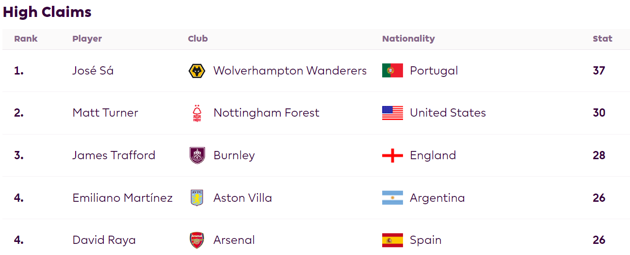 Only 3 players have caught the ball from more crosses this season than Raya. In comparison, he has punched the ball clea just 4 times (16th in the Premier League). So I am not really sure what Carney is going on about when she says Raya does not have a “commanding presence.”