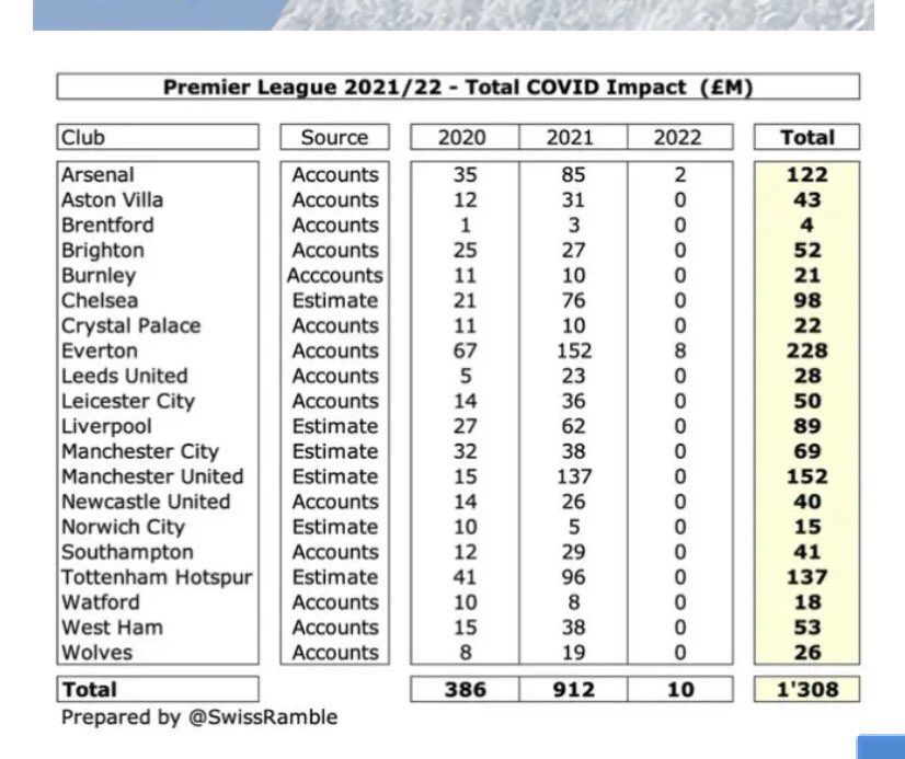 And let’s not start with their claim that their Covid impact was £100m more than any other club in the Premier League! No idea how a club with such a small stadium would suffered such a large loss due to no games!