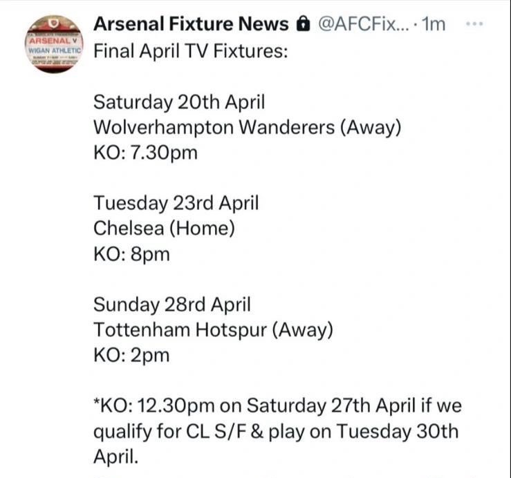 Today’s Arsenal news is that 3 more games have had their kick off times announced.
