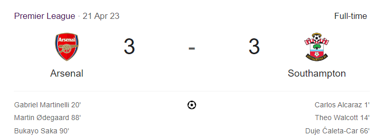 Southampton scored in the opening minute following a howler from Aaron Ramsdale, and Theo Walcott made it 2-nil with less than a quarter of an hour gone.