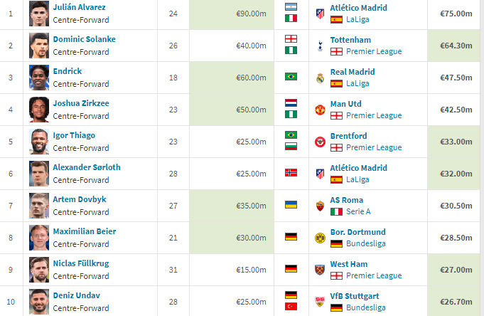 Of the 10 most expensive forwards to move this summer, I would not have taken any of them above the two we have.
