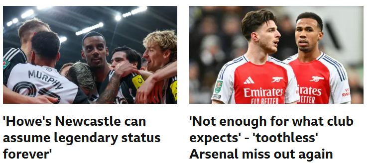 Two BBC headlines followed Arsenal’s exit to Newcastle which highlighted how vast the expectation gap is between the two.