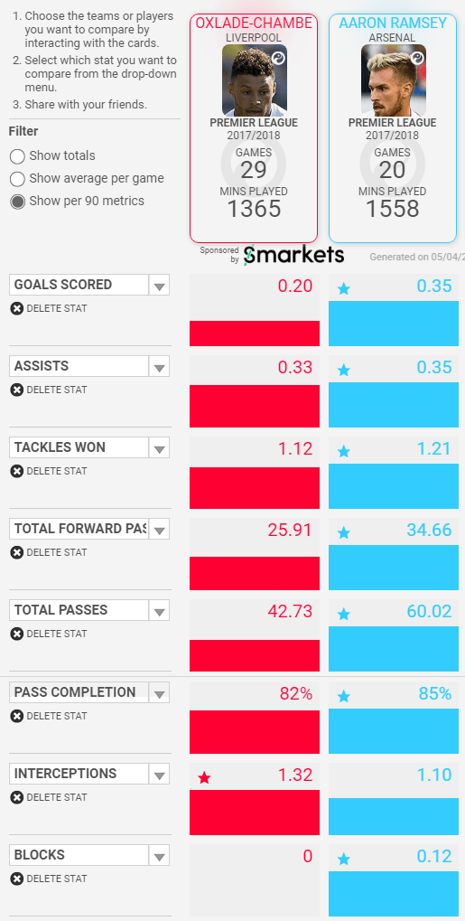 The Ox is clearly the more naturally gifted, technical footballer, but he had very little output. He does not get the goals or assists that his natural talent should bring.