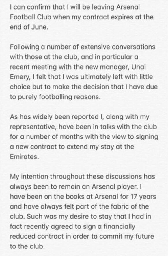 He leaves Arsenal having given the fans many memories- most notably a performance against Barcelona and that goal against Norwich.