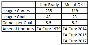 And ultimately, Ozil has won more in his Arsenal career than Liam Brady.