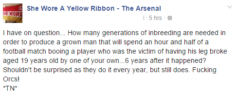 They say Arsenal fans are being oversensitive with the issue. That we are being pansies. Yet the reason they say they abuse Ramsey is because he did not accept Shawcross’s apology. His hand shake. Did not respond to his text.