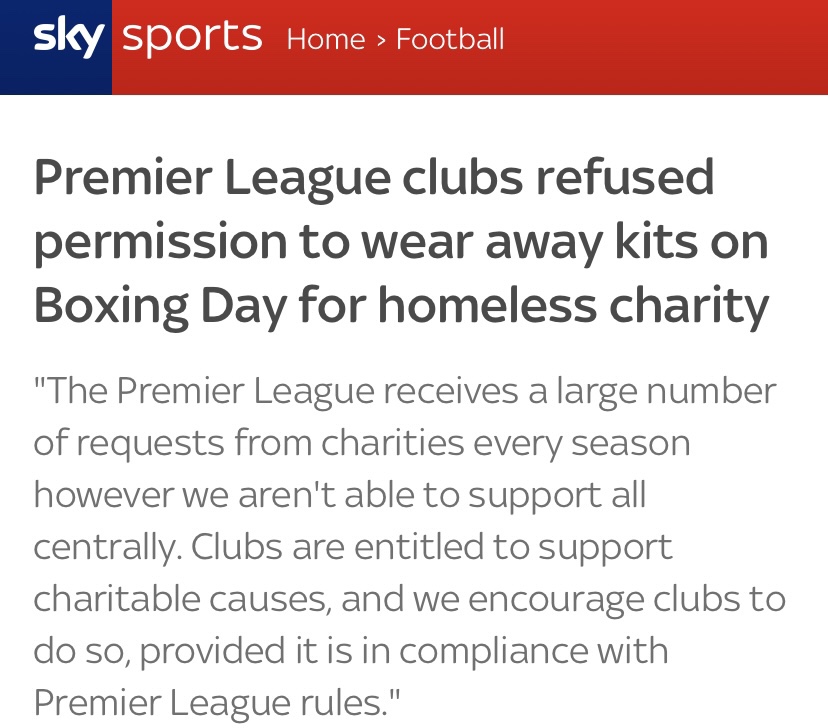 It has been well publicised that the Premier League turned down a request from homeless charity Shelter for home clubs to raise the awareness of rough sleeping.