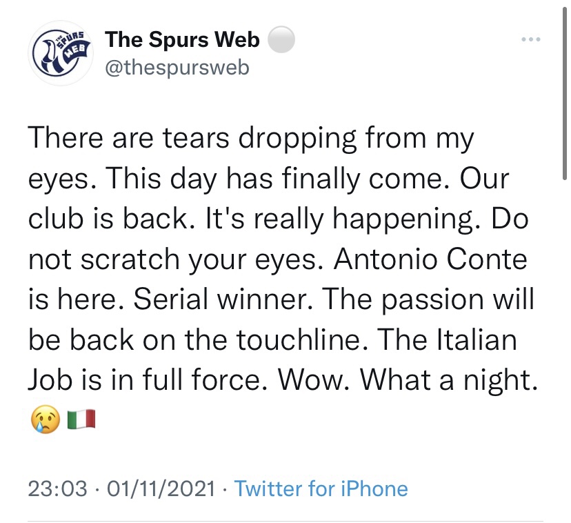 Conte will win nothing. Will leave in 18 months. And Tottenham fans will be talking up their new manager like he will return the club to greatness.