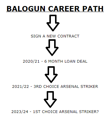 Balogun would be 3rd choice and be getting plenty of game time at 20-years-old. The task of both him and Martinelli would then be to progress enough over the next 2 seasons to show that they would be worthy of replacing Aubameyang.